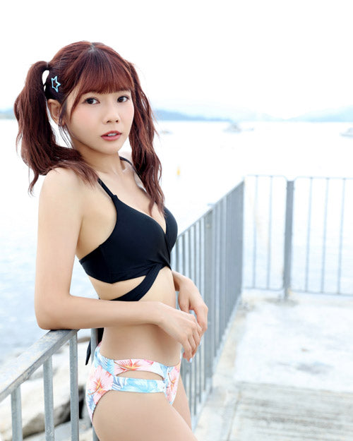 當芮絲身穿 NAMI Kawaii Collection 出現在鏡頭前,那份來自內心的自信光芒瞬間點亮整個夏天。黑色交叉綁帶比基尼上身,展現優雅的線條美感,搭配充滿熱帶風情的印花下身,完美詮釋日系甜美與性感並存的穿搭哲學。