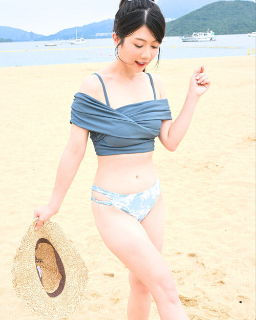 這套Kawaii Collection日系泳衣採用了獨特的交叉綁帶設計,不僅在視覺上增添了層次感,更能完美修飾身型曲線。星岑在海灘上的每一個動作都展現了啦啦隊訓練出來的優雅姿態,而泳衣的舒適剪裁讓她能夠自由自在地享受海灘時光。