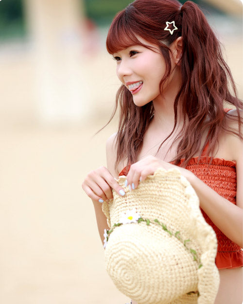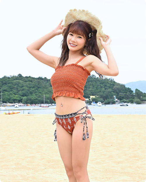 NAMI Kawaii Collection融合了日本可愛文化的精髓,打造出既甜美又不失性感的獨特風格。芮絲特別喜歡這種「可愛不做作,性感不刻意」的設計理念。橘色編織材質在陽光下呈現溫暖光澤,搭配精緻的剪裁線條,讓台灣女孩的健康美感完美展現。這正是為什麼芮絲選擇NAMI作為她夏日海灘造型的首選品牌。