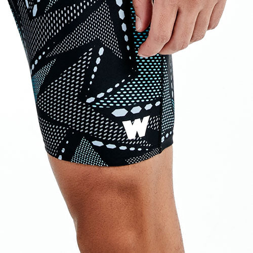 活力藍色幾何印花及膝泳褲,以動感的點陣和線條設計注入現代科技感。深藍色底色搭配亮藍色幾何元素,既醒目又不失穩重。這款設計特別適合喜歡在泳池中成為焦點的男士,V字車線和特種人字車線工藝確保在各種水上活動中都能提供最佳性能。無論是競技游泳還是休閒戲水,都能展現你的運動活力和時尚觸覺。