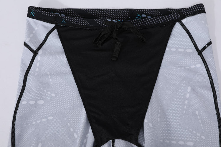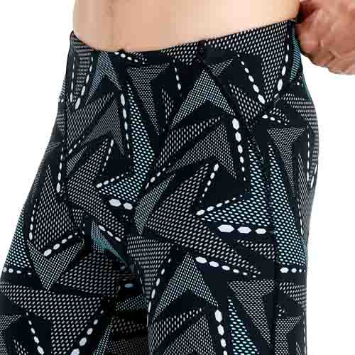 精心設計的及膝長度提供理想的覆蓋範圍,既能保護大腿肌肉,又不影響游泳動作的靈活性。適合各種體型的男士,展現運動時的專業形象。