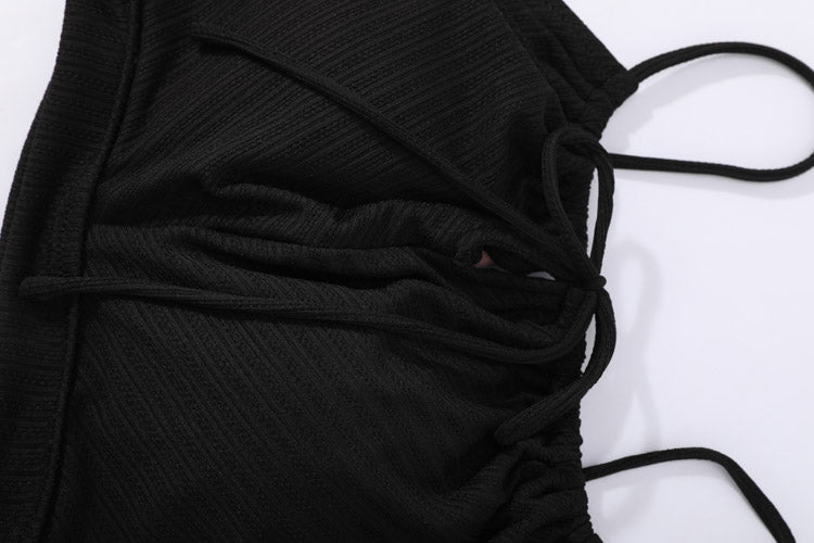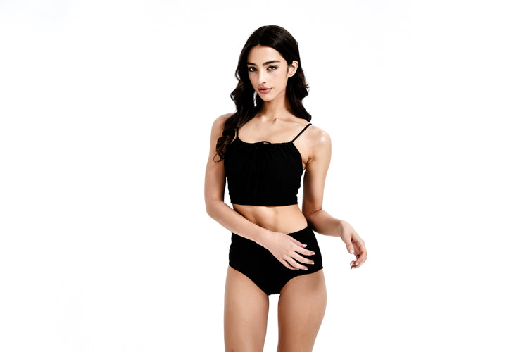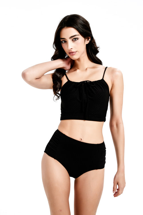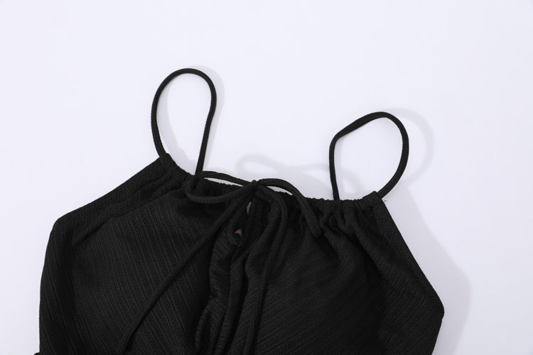 經典⿊⾊前綁帶⽐堅尼上⾐,展現永恆優雅的簡約美學。⿊⾊的經典魅⼒結合前綁帶的甜美設計,創造出既優雅⼜可愛的完美平衡。這款設計適合各種膚⾊和⾝形,無論搭配什麼顏⾊的下⾝單品都能創造出和諧的整體效果。特別適合正式的海灘活動、⾼級度假村或需要展現專業形象的場合。