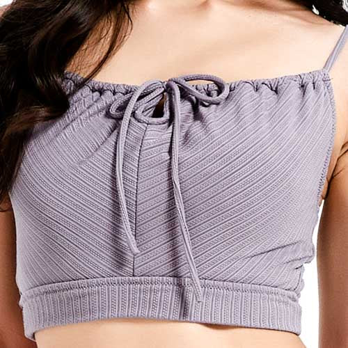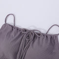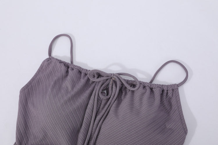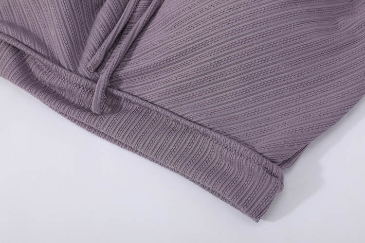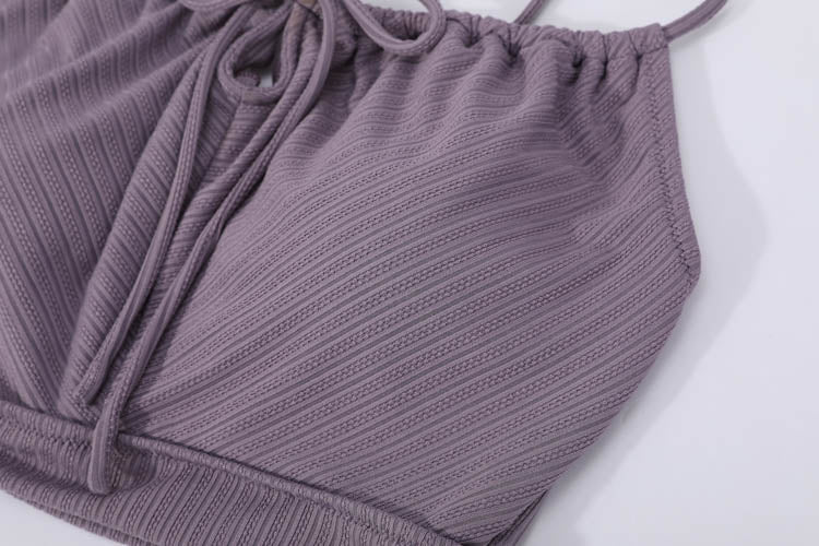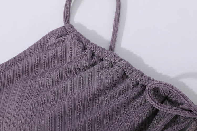 神秘紫⾊前綁帶⽐堅尼上⾐,散發薰⾐草⽥般的浪漫情懷。這個獨特的紫⾊調既神秘⼜浪漫,能為海灘造型增添獨特的個性⾊彩。前綁帶設計增添甜美元素,可創造多種不同的造型效果。特別適合追求獨特⾵格的⼥性,無論是浪漫的海邊約會或是個性化的海灘拍攝都能完美展現,讓你成為海灘上最特別的存在。