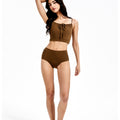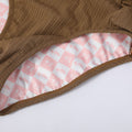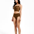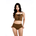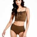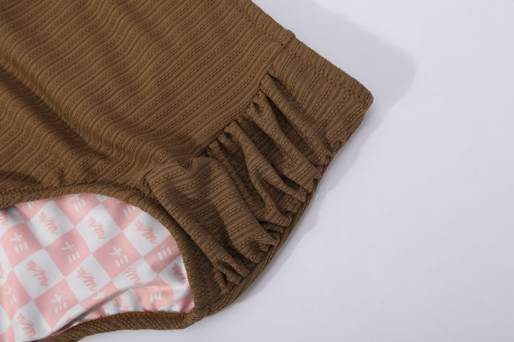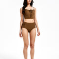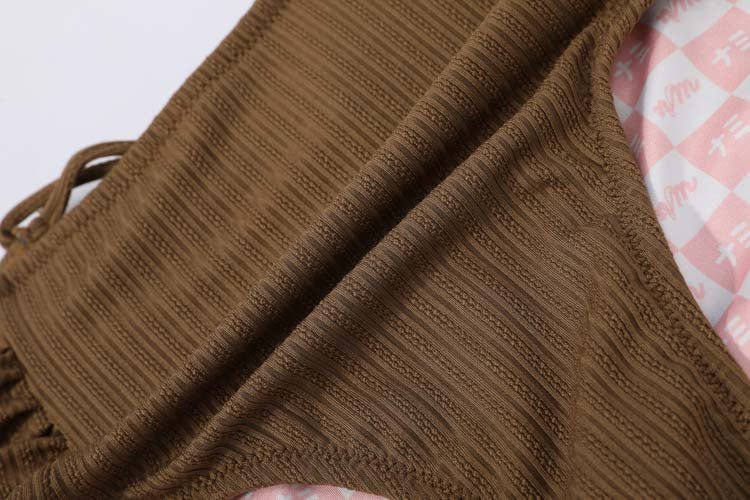 這款溫暖咖啡⾊⽐堅尼褲⼦散發低調奢華的⾃然魅⼒,⼤地⾊調與肌膚完美融合,創造出和諧統⼀的視覺效果。側邊綁帶設計提供靈活調節功能,⼤包圍剪裁確保優雅得體的穿著體驗。特別適合在⾃然環境的海灘、⽣態度假村或追求⾃然⾵格的場合穿著。咖啡⾊具有很好的親和⼒,能解決過於突出或不夠低調的穿搭困擾,讓穿著者在展現個⼈魅⼒的同時保持優雅內斂。這個顏⾊特別適合成熟⼥性或追求⾃然美感的⼈群,能完美襯托健康的膚⾊和⾃信的氣質。背部的精緻細節設計增加視覺層次,讓整體造型更加豐富迷⼈。