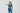 深藍色緊身低企領開胸防曬泳衣 <28941099-L11>