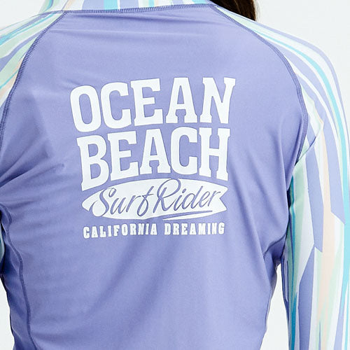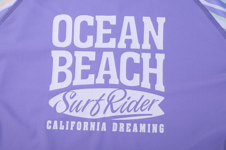 多種時尚配色與設計選擇,從經典撞色到藝術潑墨印花,滿足不同風格需求;背部「OCEAN BEACH」字樣展現衝浪文化,讓您在保護肌膚的同時,也能彰顯個人時尚品味。