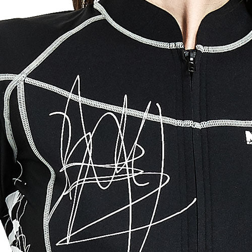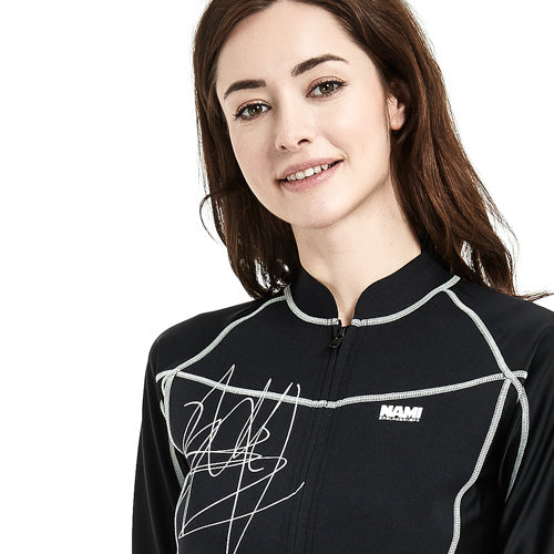 這款NAMI PRO黑色經典長袖保暖衣,配以精緻的白色線條設計,簡約中帶有獨特風格。採用1.5mm neoprene材質製成,前後幅提供恰到好處的保暖效果,適合在各種水溫環境中使用。前胸開叉設計方便穿脫,貼身剪裁展現完美身形曲線。兩側及袖部選用高彈性泳衣布料,確保您在浮潛、衝浪或滑水板等活動中保持最大的靈活性。黑白配色百搭時尚,無論與什麼顏色的泳褲搭配都能展現專業水上運動形象。