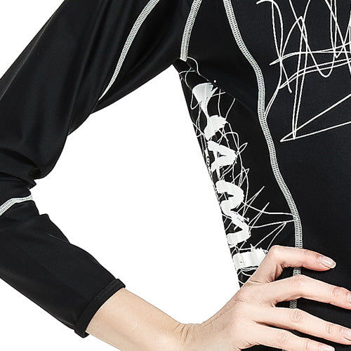 黑色緊身長袖保暖泳衣 <81394-F7>