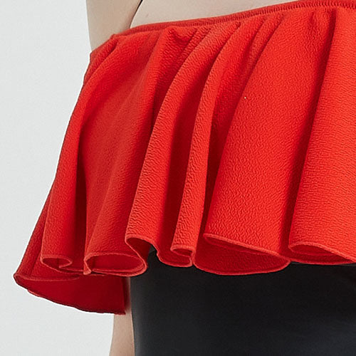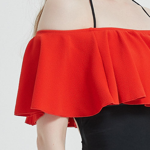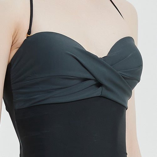 黑色收腰大露背1件頭連身泳衣 <21331731>