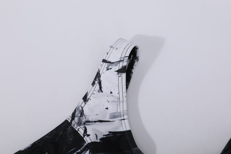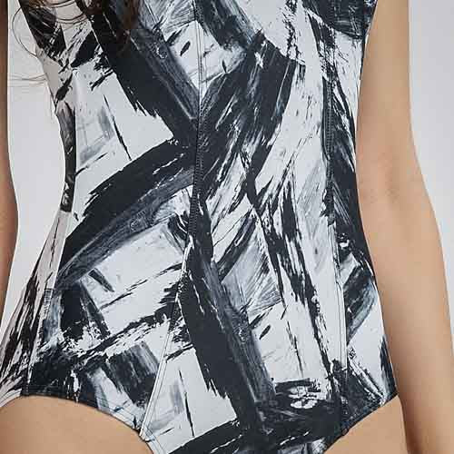 水墨印花露背連身運動泳衣 <21011703-TQ03>