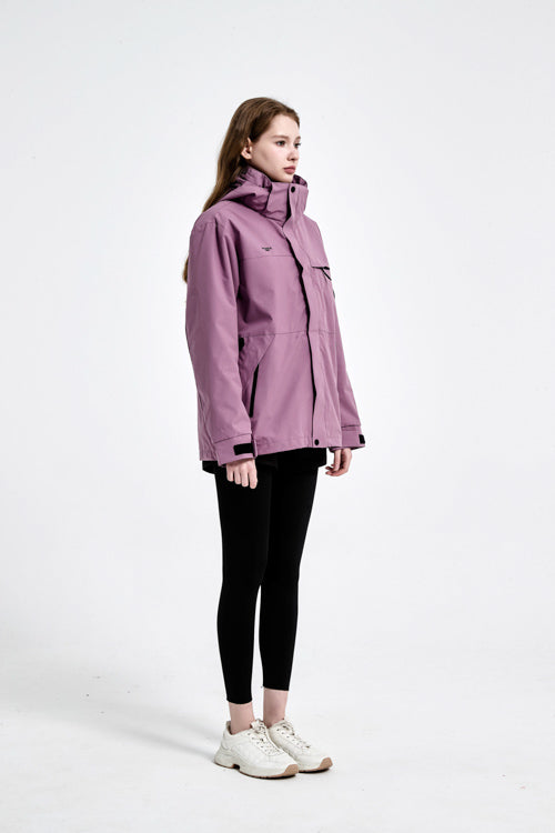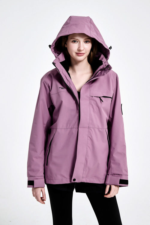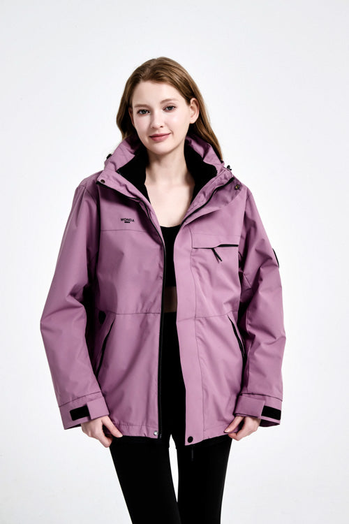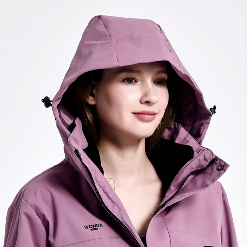 WONDA⼥⼠⼆合⼀防⾵外套|防⾵撥⽔抓⽑保暖外套|粉藍紫三⾊⾏⼭必備