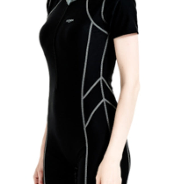 經典黑色練習泳衣,前中拉鍊設計讓穿脫變得輕鬆簡單。採用獨特人字車線工藝,大幅提升耐用度。側骨線條設計突顯腰身,特別適合長期游泳訓練使用。無論是教練授課還是個人練習,都能提供最佳穿著體驗。