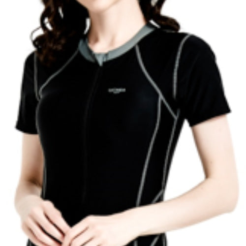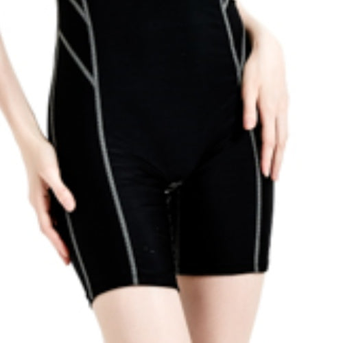 黑色拉鍊及膝短褲套裝運動泳衣 <22161495>