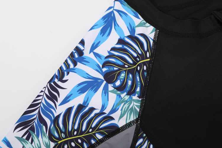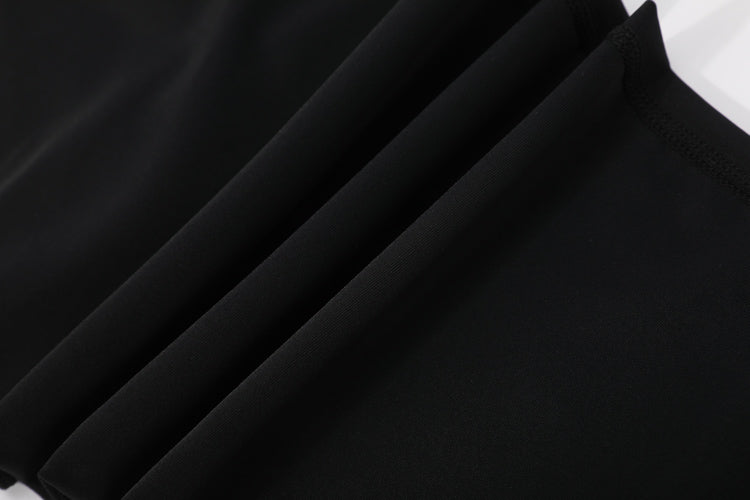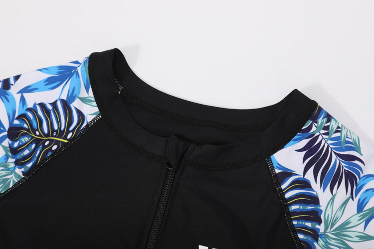 黑色拉鍊連身裙長褲套裝運動泳衣 <25061784>
