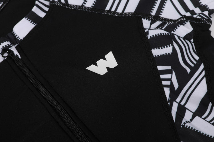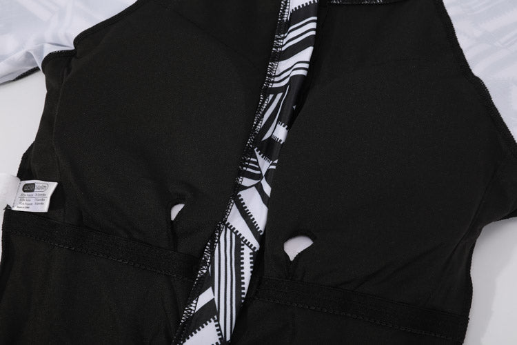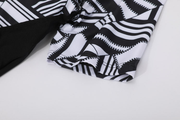黑白幾何印花搭配側骨車線設計,營造視覺修身效果,讓身材比例更加優美。