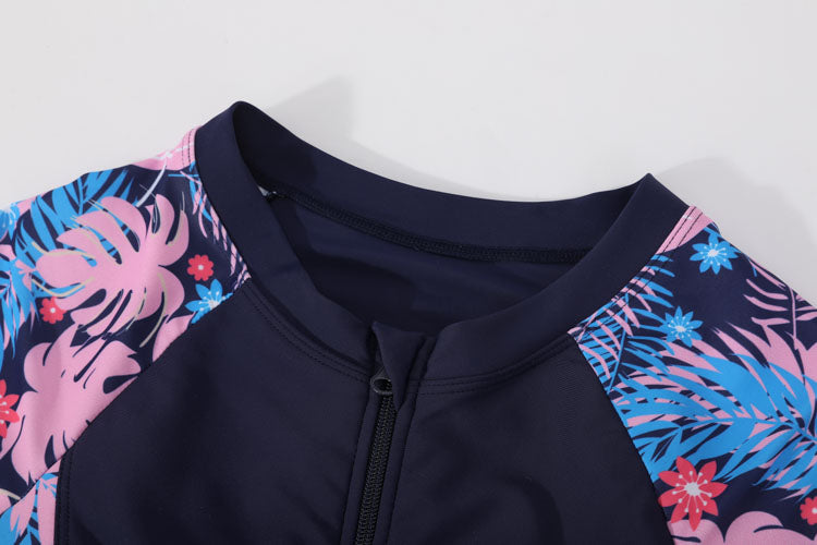 深藍色拉鍊連身裙套裝運動泳衣 <25041779>
