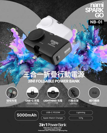 NAMI Spark GO三合一行動電源|5000mAh PD20W快充移動電源|Type-C Lightning Apple Watch充電