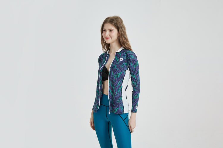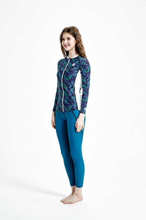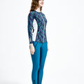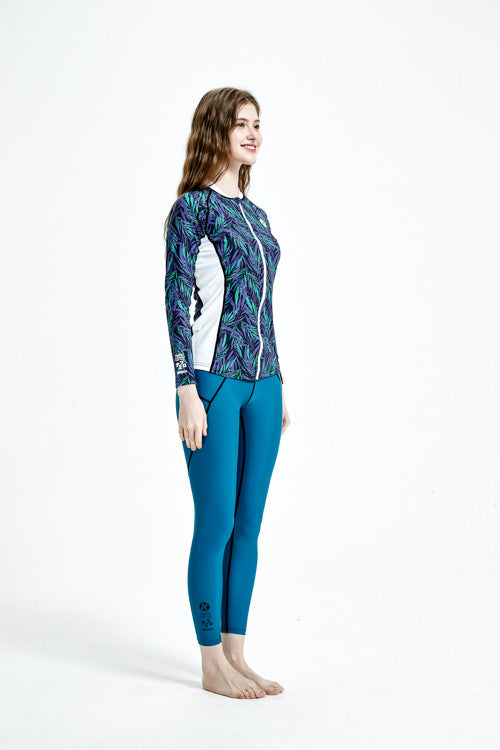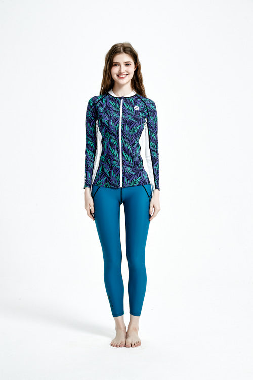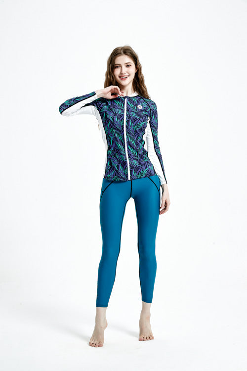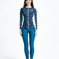 深藍色緊身低企領開胸防曬泳衣 <28941099-L11>