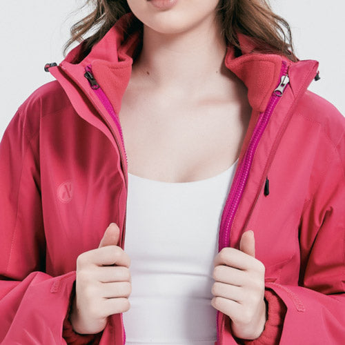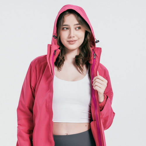 NAMI玫瑰紅二合一外套,亮眼純色設計展現活力氣質。外層防風防水功能出眾,內層抓毛衣保暖舒適。左胸拉鍊側袋方便實用,可拆式後帽增添造型變化。魔術貼袖口有效防風,無論是滑雪、極地旅行還是寒冬郊遊都能完美應對。建議搭配黑色運動褲,讓亮麗外套成為造型焦點。