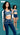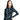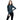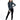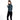型格藍色幾何圖案四件套泳衣,採用快乾面料,防曬外套配備拉鍊設計,搭配修身黑色長褲,打造時尚運動造型。