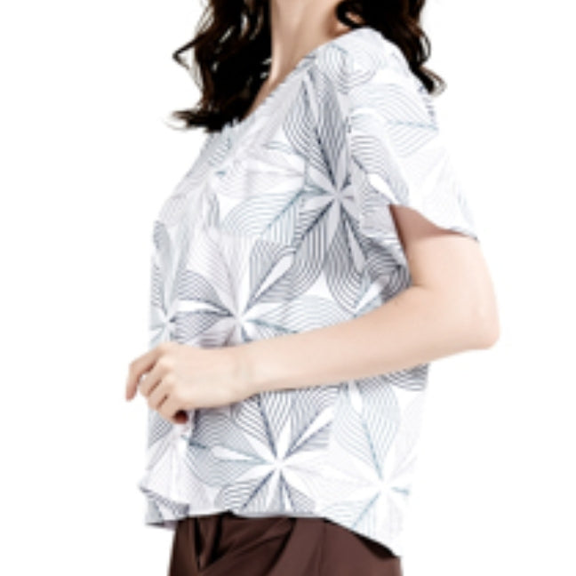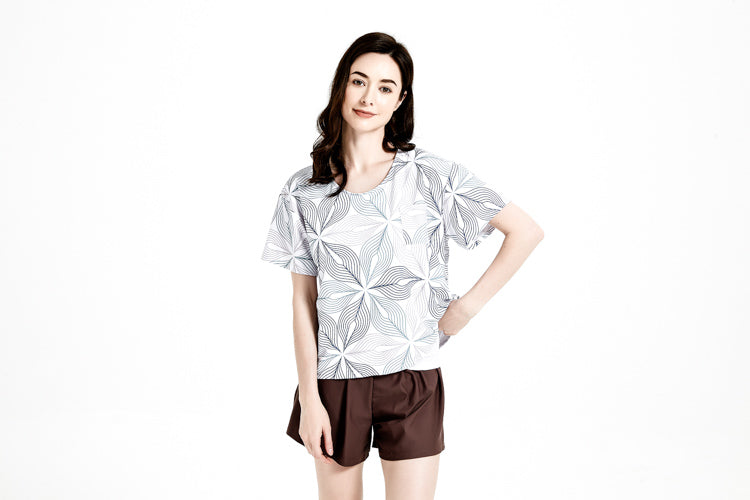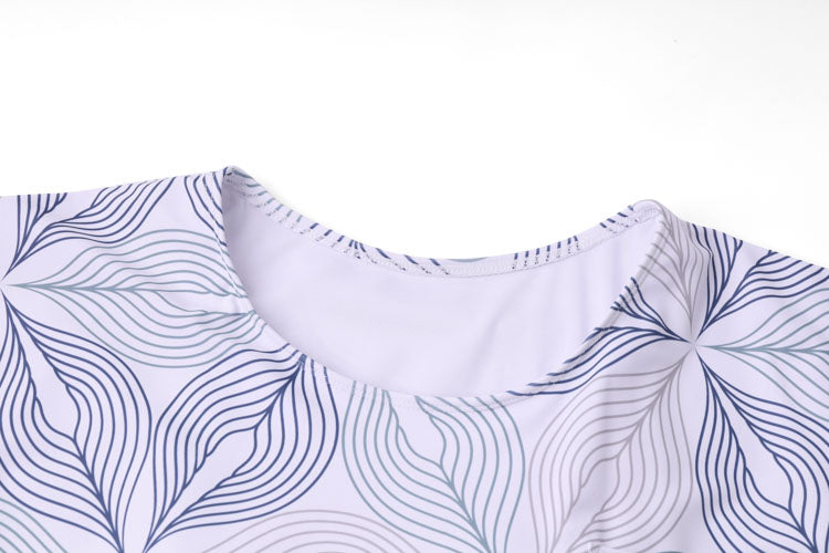 Wonda清新氣質花卉系列泳裝,以優雅的幾何花紋點綴純白上衣,搭配實用的黑色短褲,完美演繹運動與時尚的平衡。特色包括: