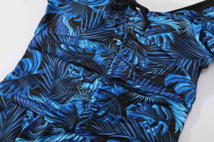 深藍色分體裙褲套裝運動泳衣 <25081786>