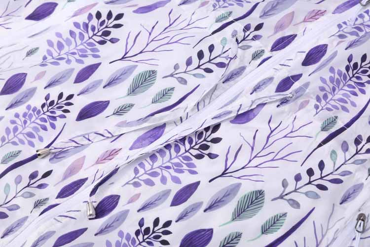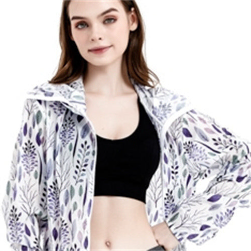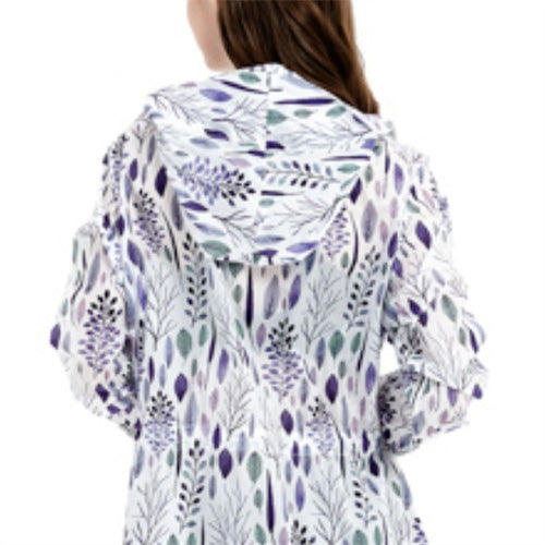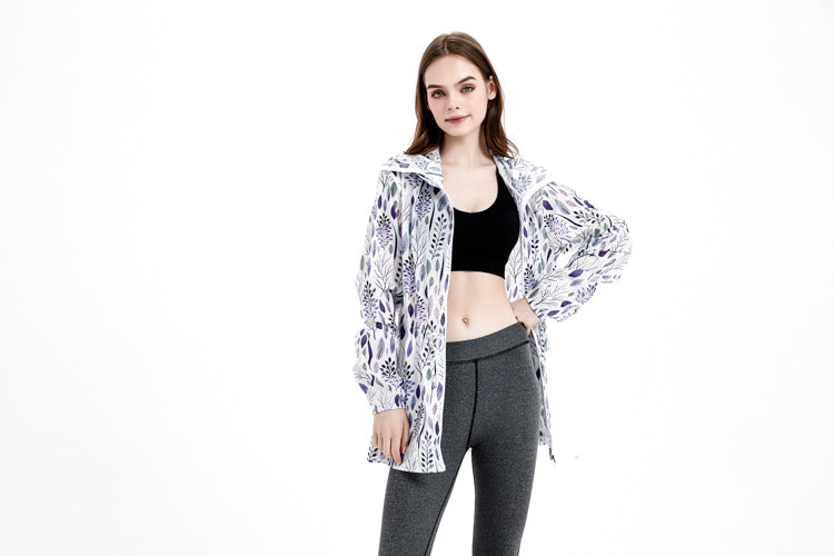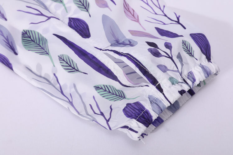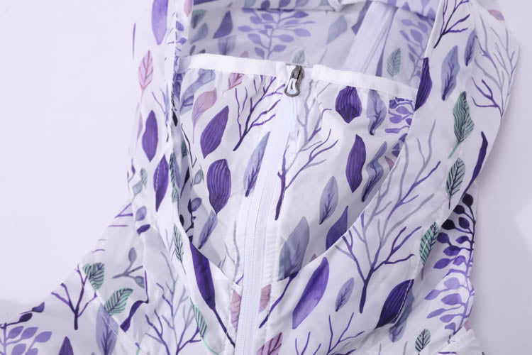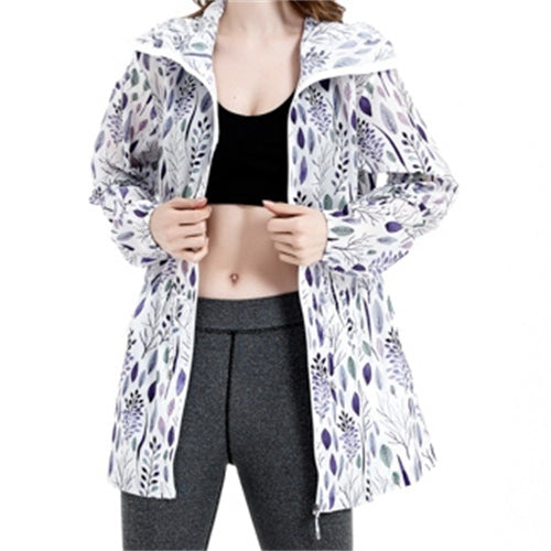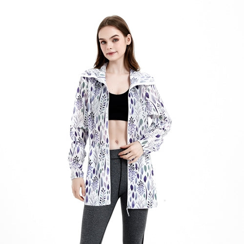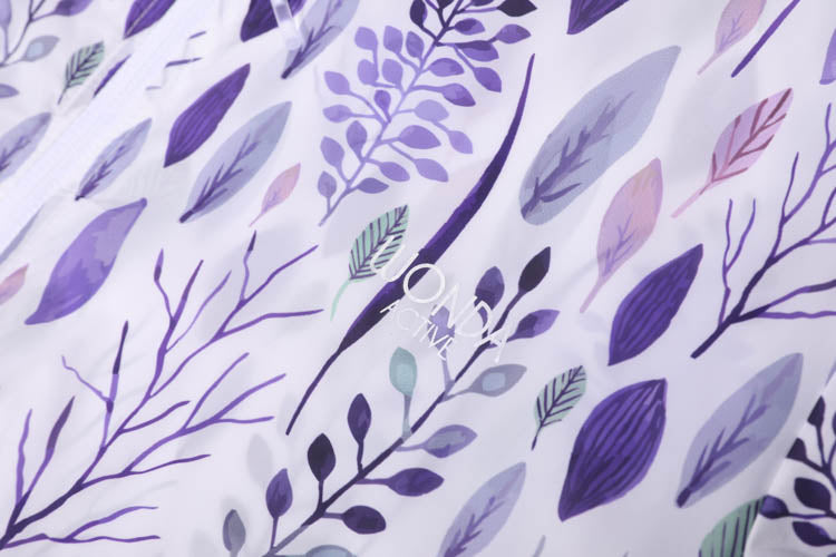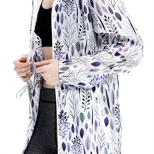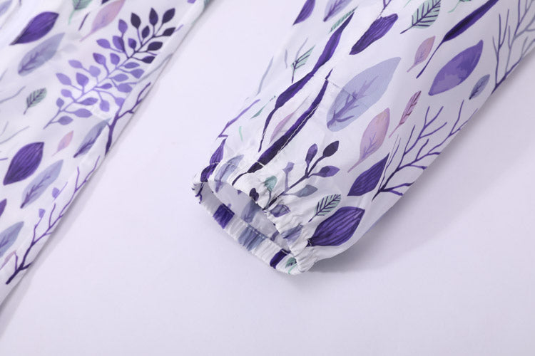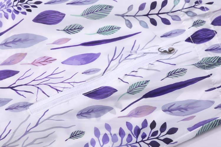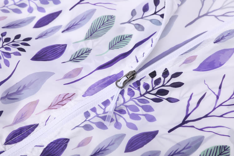 優雅紫色花卉印花,展現柔美春季風格。採用輕量防潑水面料,搭配可調式連帽設計,完美結合時尚與實用性。